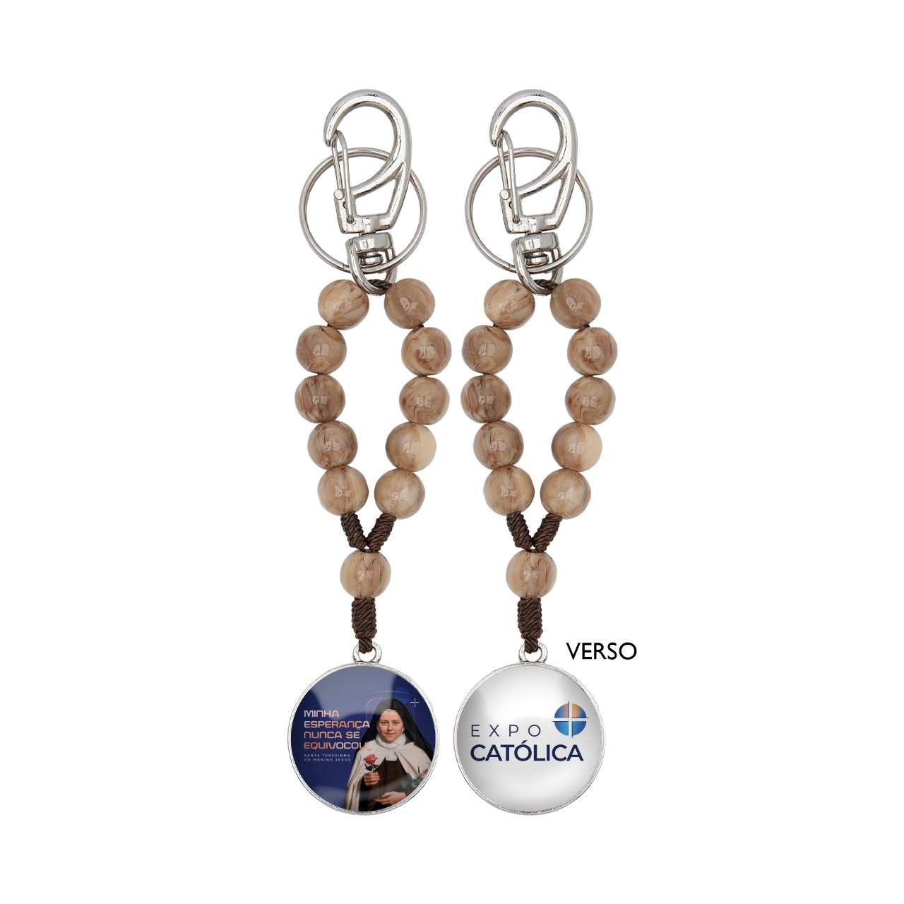 Chaveiro mosquetão Santa Teresinha com dezena.