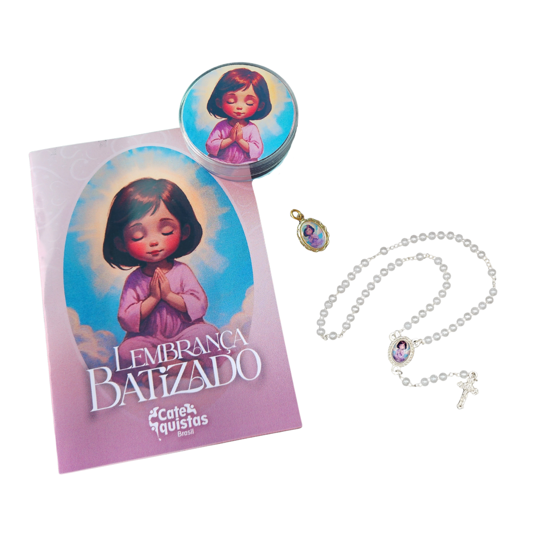Devoção: O kit é um convite à devoção, ensinando desde cedo a importância de se aproximar de Deus e de Maria através da oração do terço.