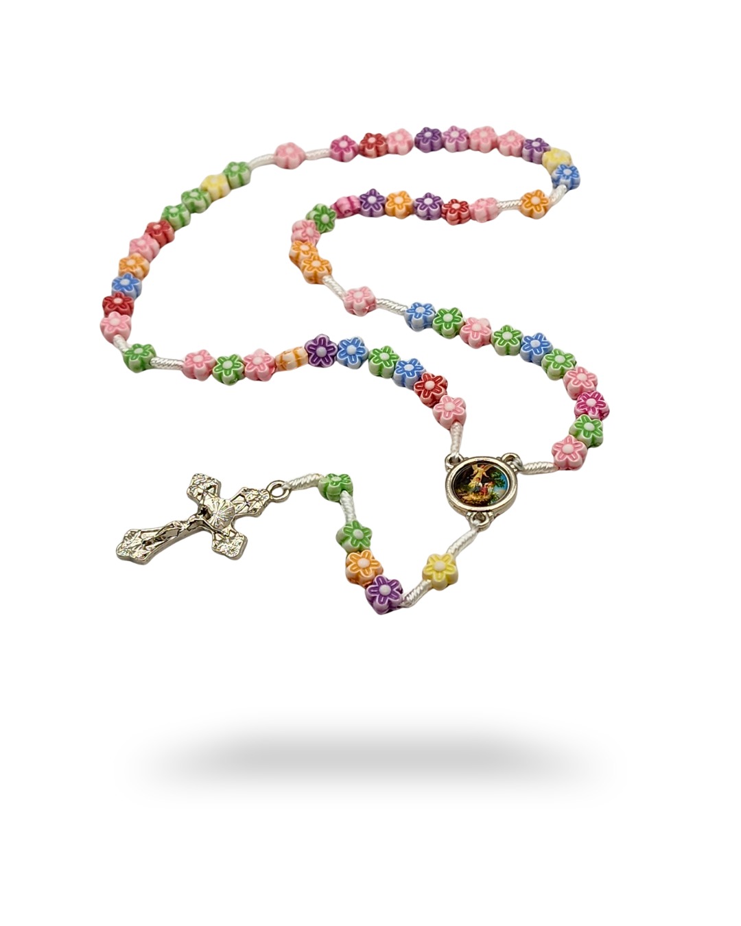 Transforme o momento da oração em uma descoberta encantadora! O Terço infantil de flor foi pensado detalhadamente para o universo das meninas, unindo o lúdico da infância com a profundidade da fé.